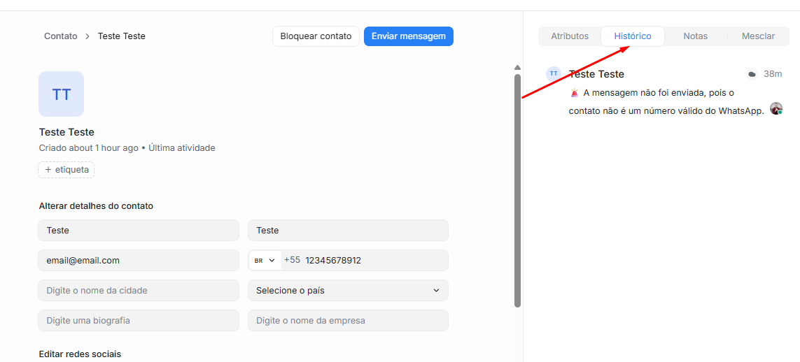 Na aba "Contato", selecione o contato desejado e depois clique em ver detalhes.